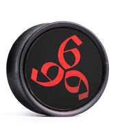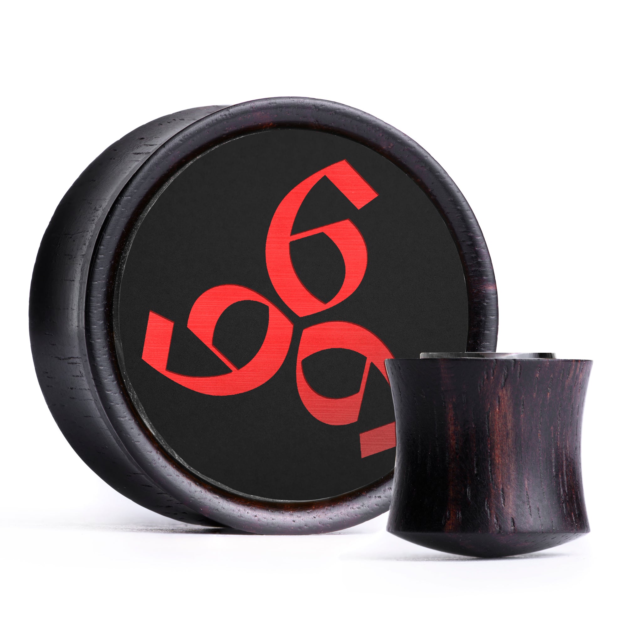Doppelt gebogene Ebenholz Schwarz & Rot Einlage Holz Plugs mit der lasergravierten “666' design.