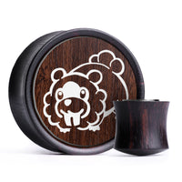Doppelt ausgestellte Plugs aus Ebenholz und Walnussholz in limitierter Auflage mit Lasergravur Pokémon „Bidoof“
