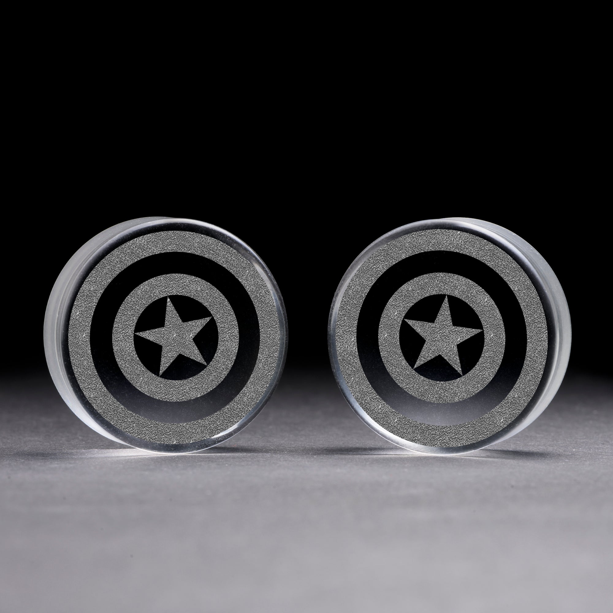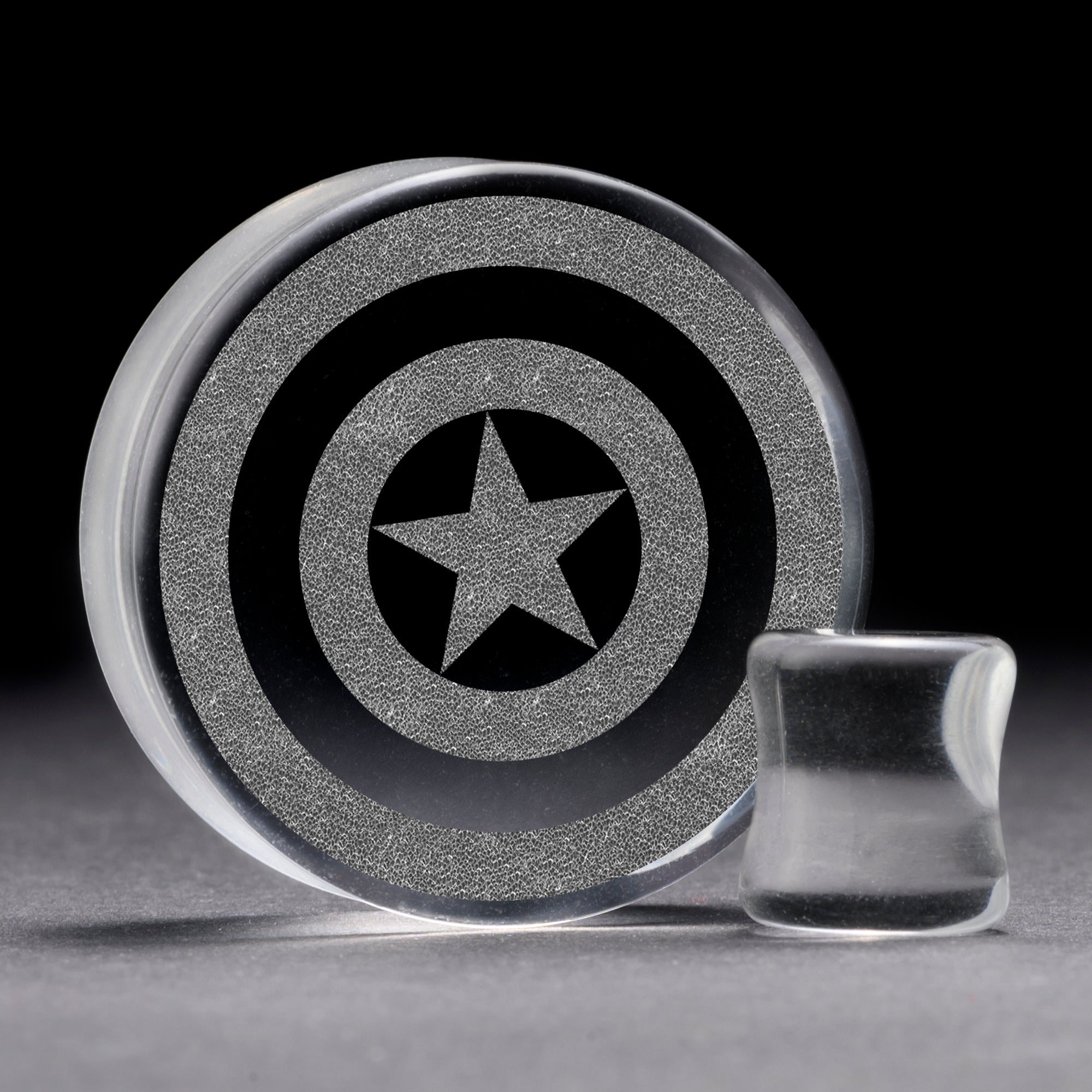 flach ‚Faced doppeltes, klar, Glasplug mit unserem lasergravierten" Captain America " Design.