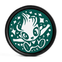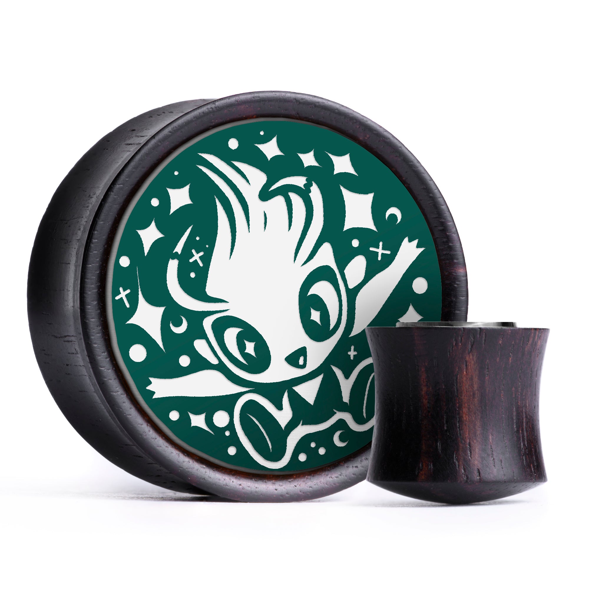 Limitierte Edition doppelt ausgestellte Ebenholz Grün & Weiß Inlay Holz Plugs mit dem lasergravierten Pokemon "Celebi"