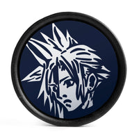 Limitierte Auflage von doppelt ausgestellten Ebenholz Blau & Weiß Einlage Holz Plugs mit dem lasergravierten "Cloud Strife