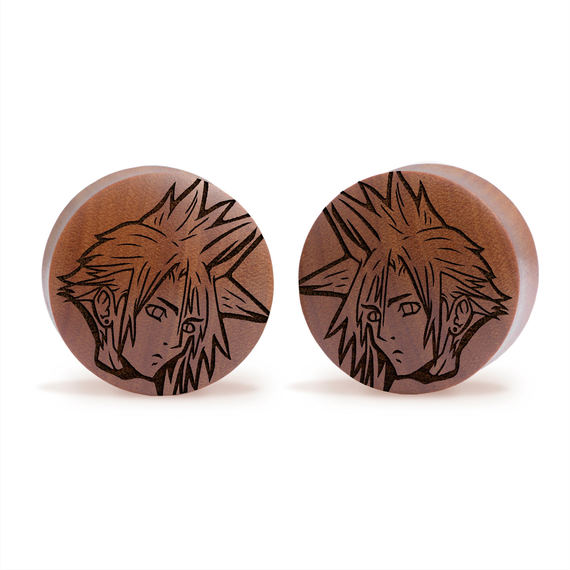 Konvex Doppelt geblähte Saba-Holz Plugs mit unserem lasergravierten “Cloud Strife" Design.