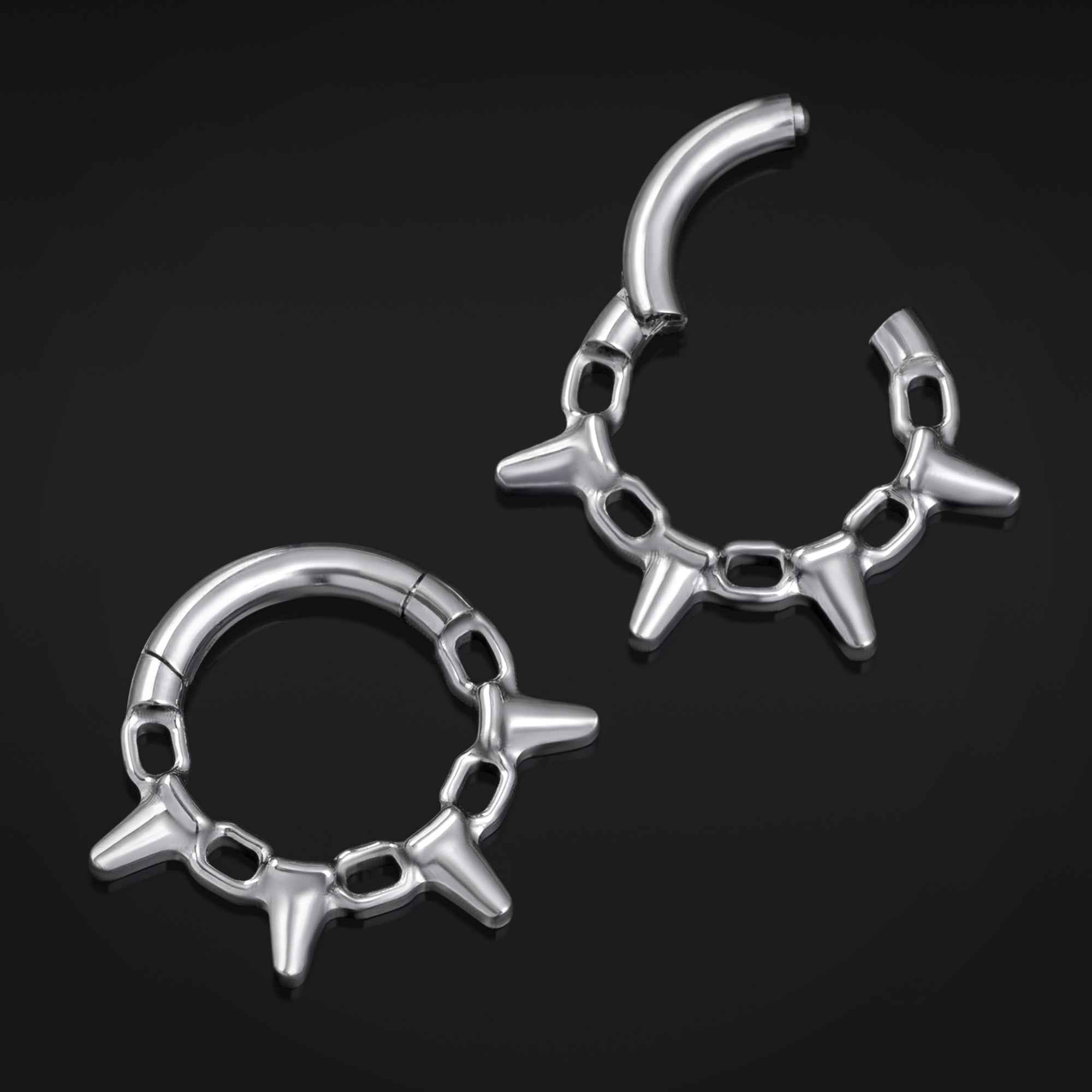 Gefertigt aus ASTM F136 Titan, überzeugt dieser Spiked Chain Segment Clicker durch Langlebigkeit und Stil. Das Spiked Chain Design verleiht diesem Schmuckstück eine besondere Note und macht es zur perfekten Ergänzung jeder Jewellery-Sammlung. Dank des einfach zu bedienenden Segmentverschlusses lässt sich der Clicker mühelos einsetzen.