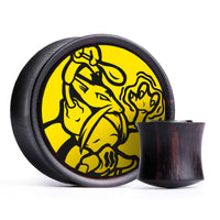 Doppelt ausgestellte Plugs aus Ebenholz mit gelbem und schwarzem Inlay in limitierter Auflage mit Lasergravur Pokémon „Kadabra“