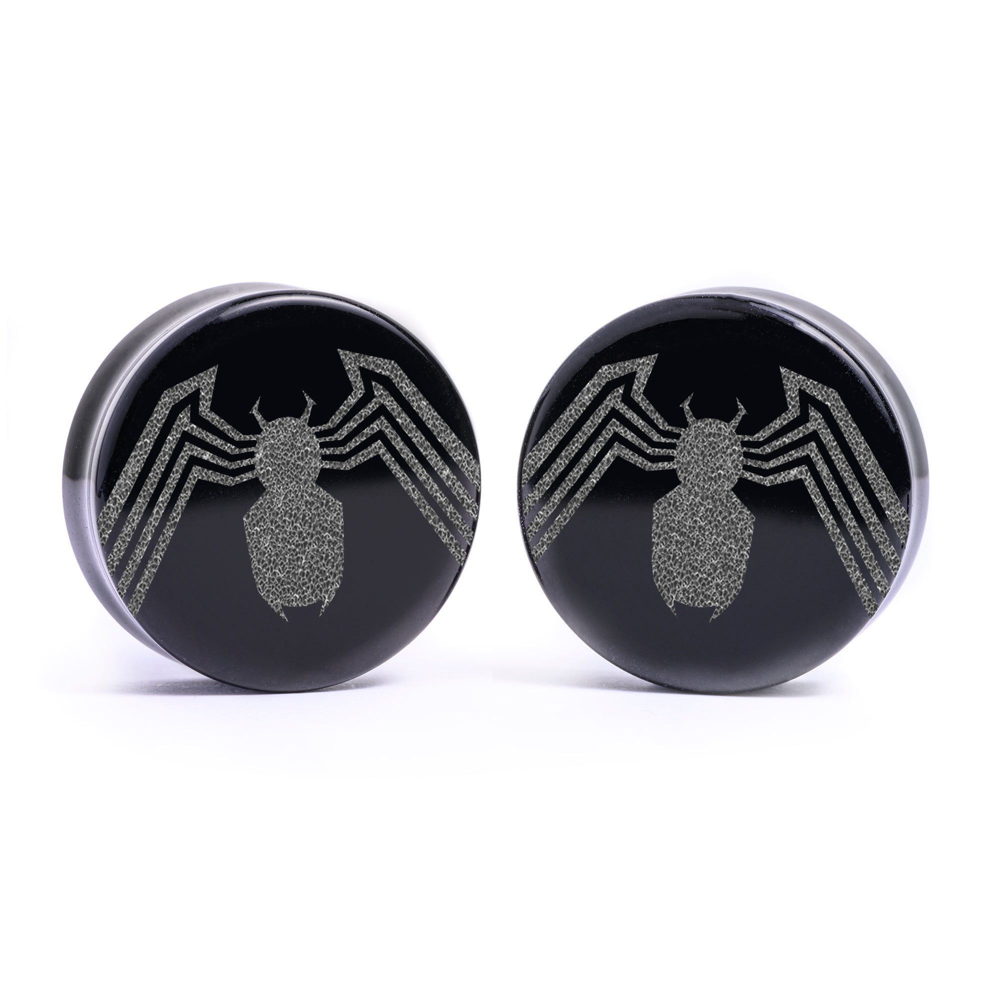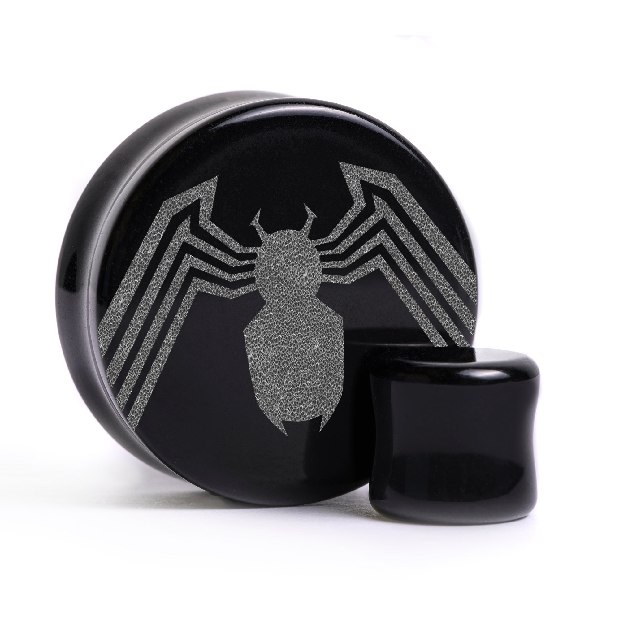 flaches Gesicht doppelte schwarze Glasplug mit unserem lasergravierten " Venom -Logo " Design.