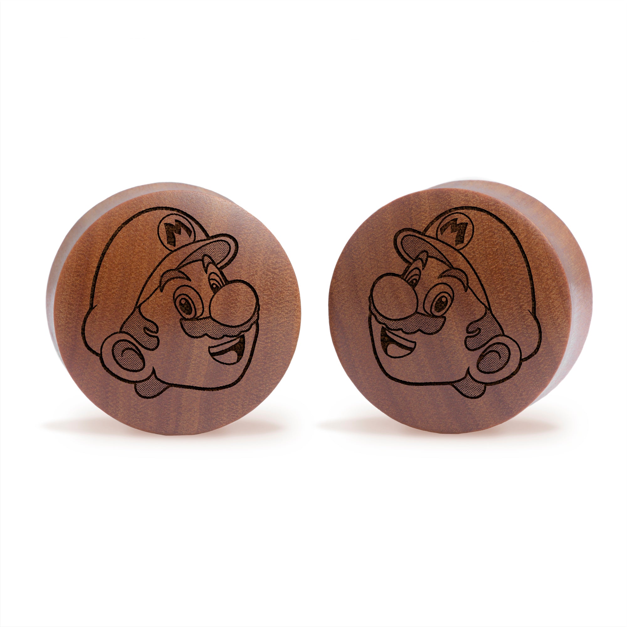 Konvex Doppelt ausgestellte Saba-Holz-Plugs mit unserem lasergravierten “Mario" Design.