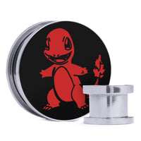 Limitierte Auflage, Hohe Qualität Silberstahl Doppelt geflanschte Schraubverschluss Black & Red Inlay Plugs mit lasergraviertem Design Pokemon "Glumanda"