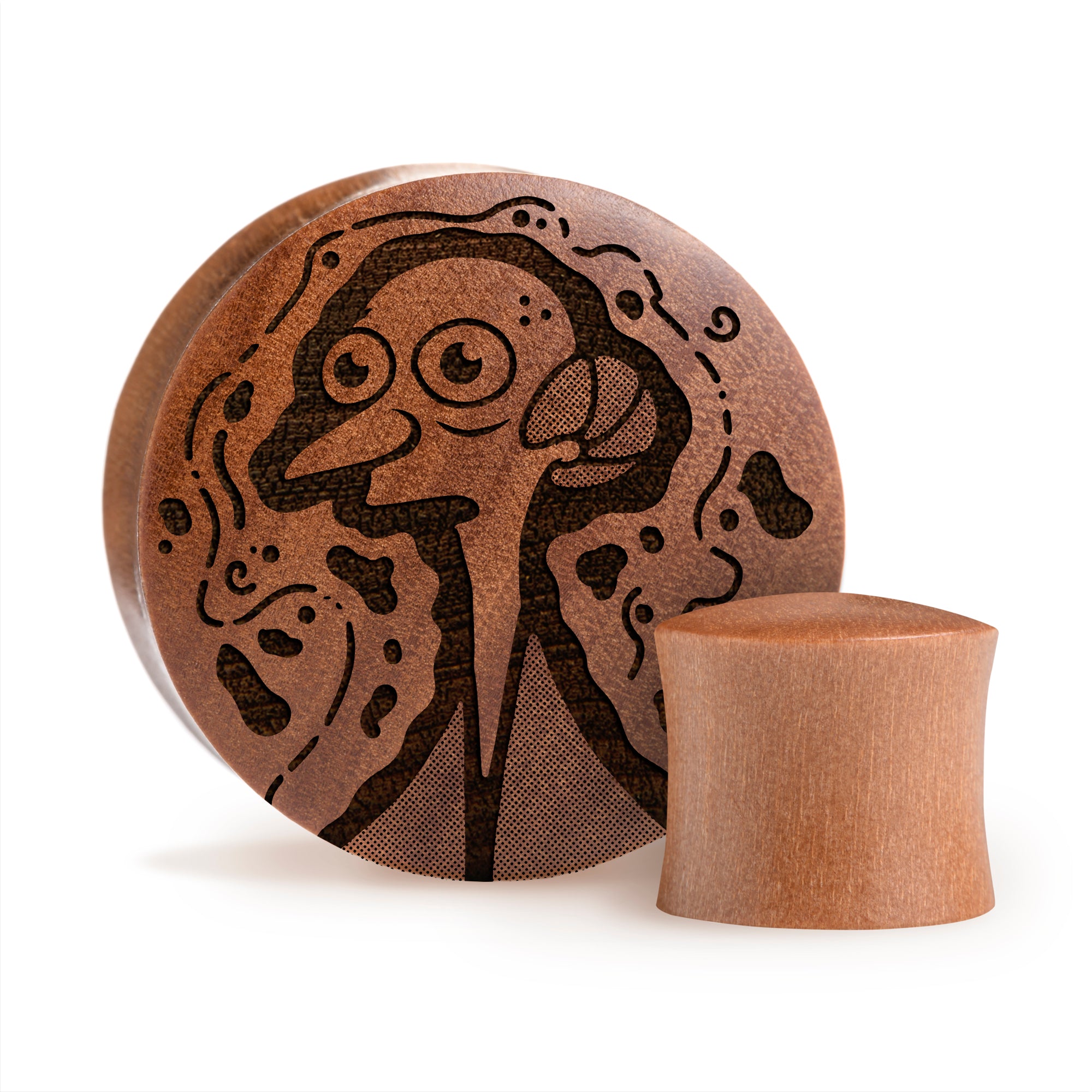 Begrenzte Auflage Konvex Doppelt ausgestellte Saba-Holz Plugs mit unserer lasergravierten “Mr. Burns"Design. Dieses Produkt ist Teil unserer Halloween-Promotion