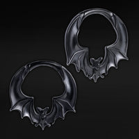Schwarzer Fledermaus Ohrgewichte mit einem klickerhingenbefestigten Befestigung.