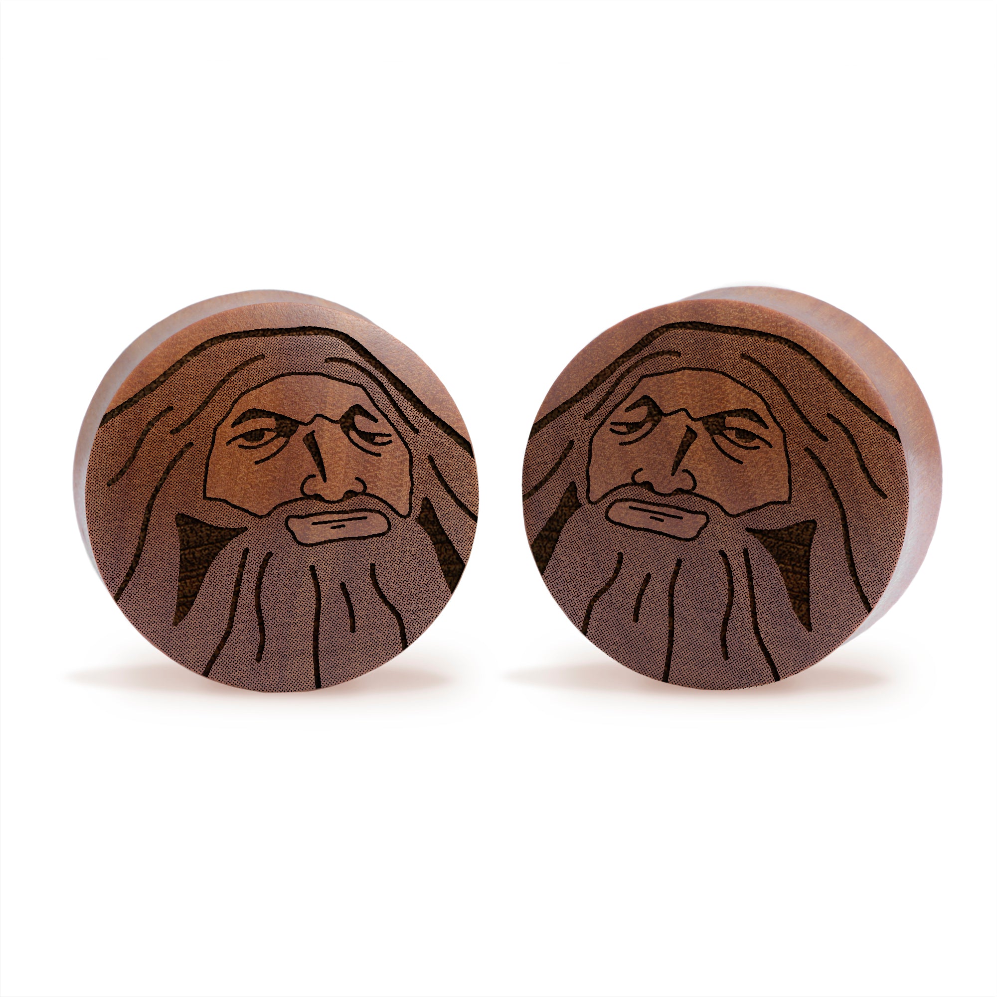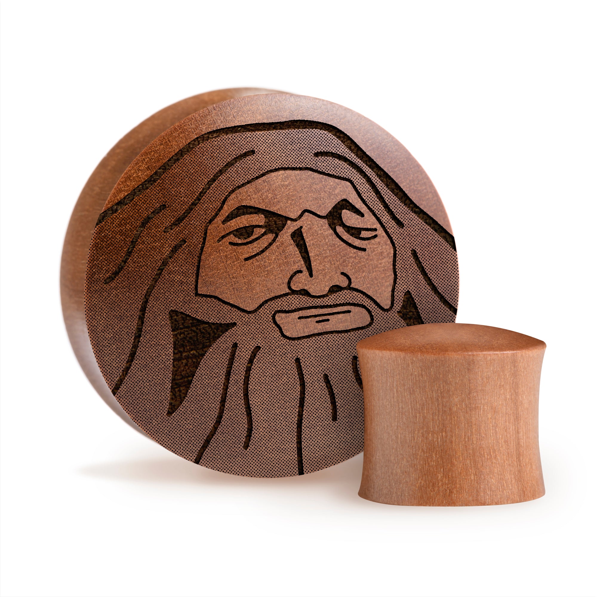 Konvex Doppelt ausgestellte Saba-Holz-Plugs mit unserem lasergravierten “PS1 Hagrid" Design.