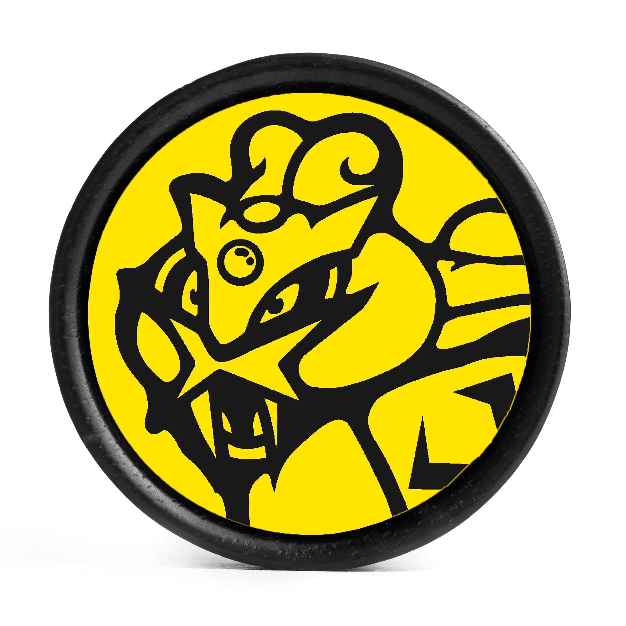 Limitierte Edition doppelt ausgestellte Ebenholz Gelb & Schwarz Einlage Holz Plugs mit dem lasergravierten Pokemon "Raikou"