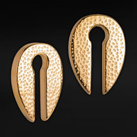 Gehämmerte goldfarbene Schlüsselloch-Ohrgewichte – Paar