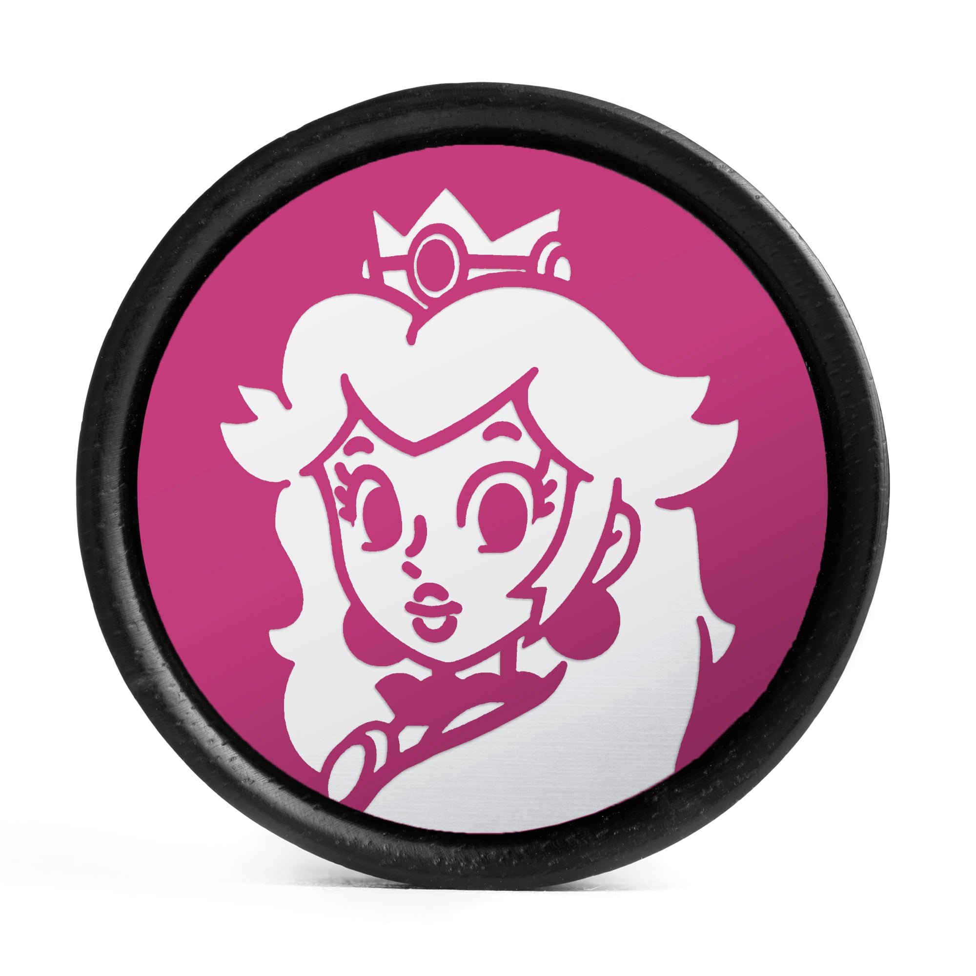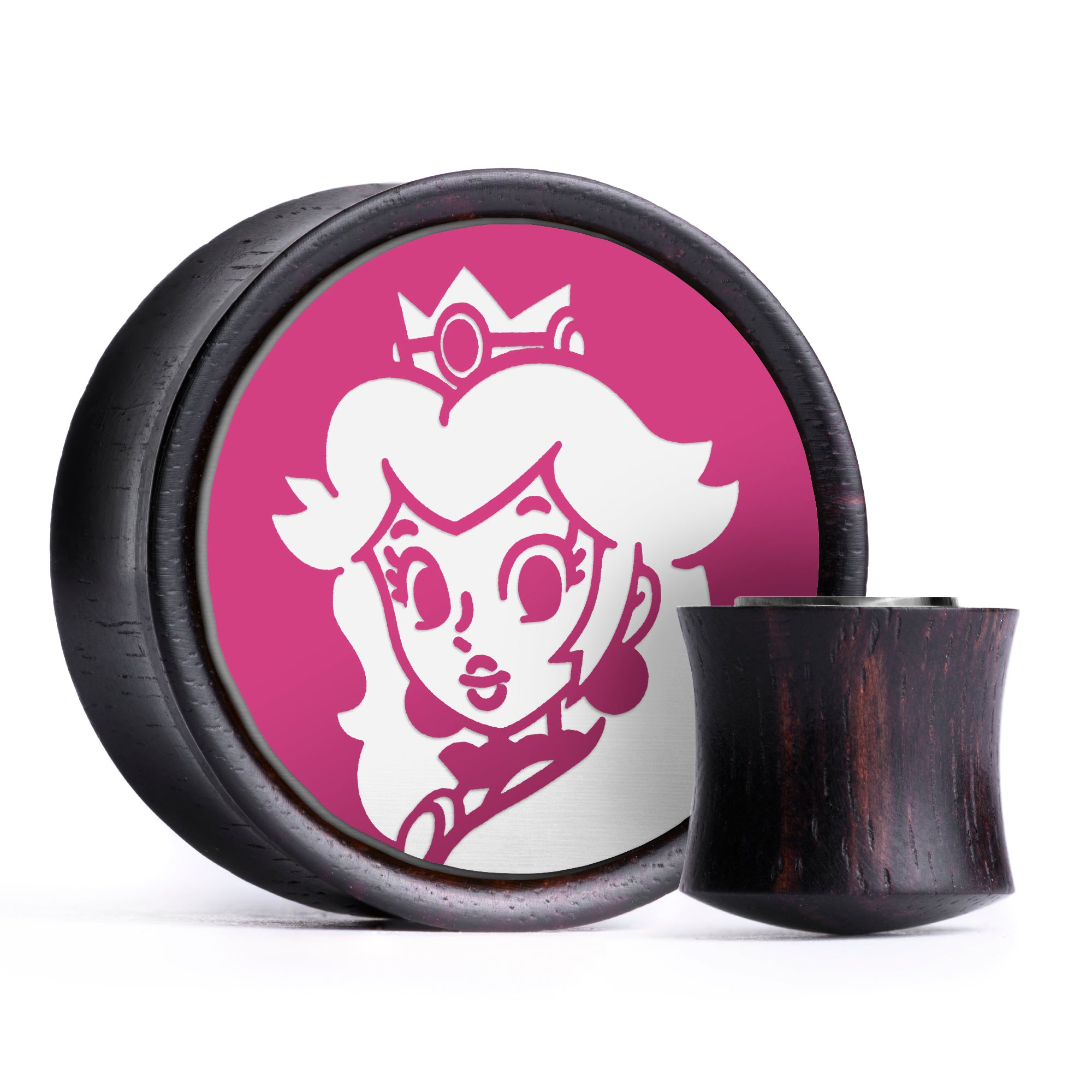 Limitierte Auflage: Doppelt geflanschte Ebenholz-Plugs mit pink-weißer Einlage und Lasergravur "Princess Peach"