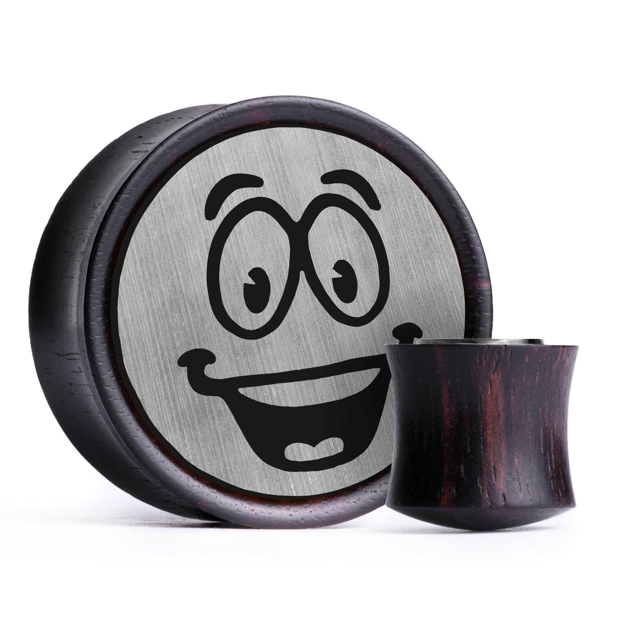 Limitierte Edition: Doppelt geflammte Ebenholz Plugs mit gebürstetem Silber & schwarzem Inlay aus Holz, versehen mit der lasergravierten Aufschrift "Yes Man"