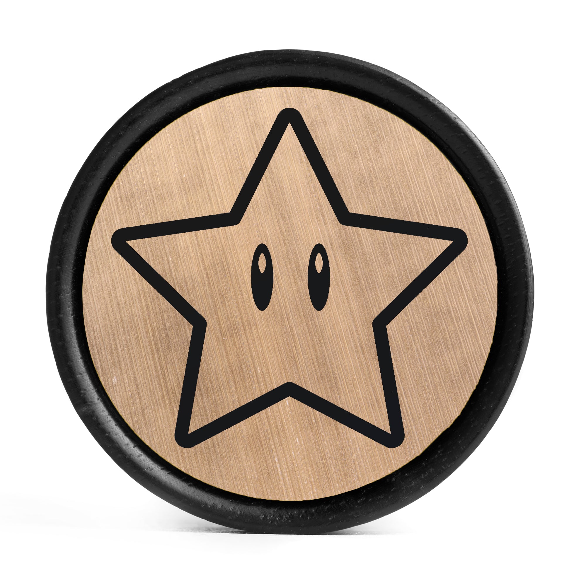 Limitierte Edition: Doppelt geflammte Ebenholz Plugs mit gebürstetem Gold- & Schwarz-Inlay aus Holz, versehen mit dem lasergravierten "Power Star"