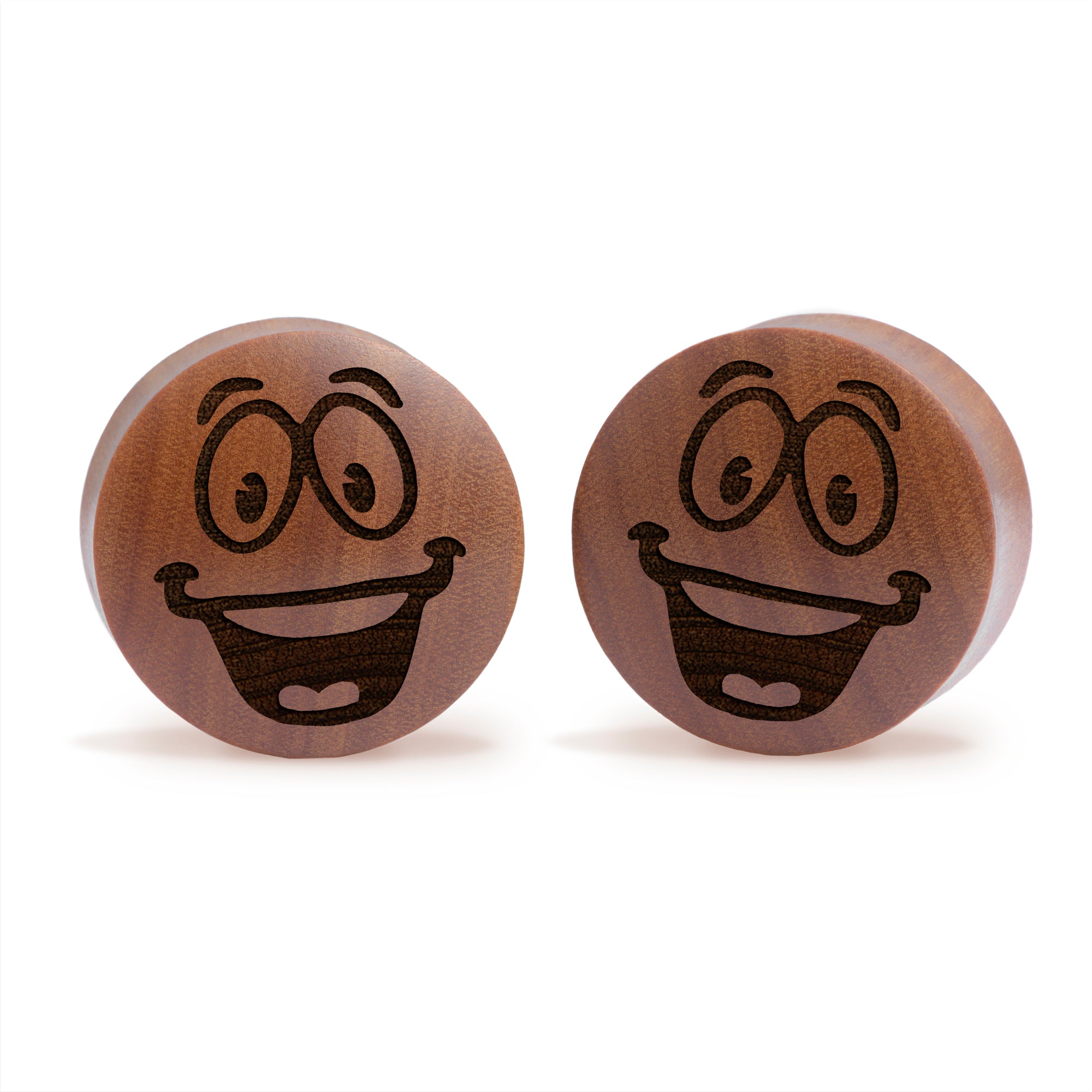 Konvexe Doubleflared Saba Wood Plugs mit unserem lasergravierten „Yes Man“-Design.