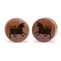 Konvexe Doubleflared Saba Wood Plugs mit unserem lasergravierten „Caesar's Legion Logo“-Design.