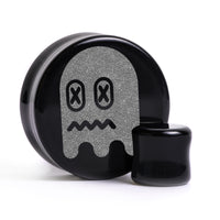 Pac-Man verängstigter Geist Plug / Dehnstab - Schwarzes Glas | Flache Vorderseite, Double Flare