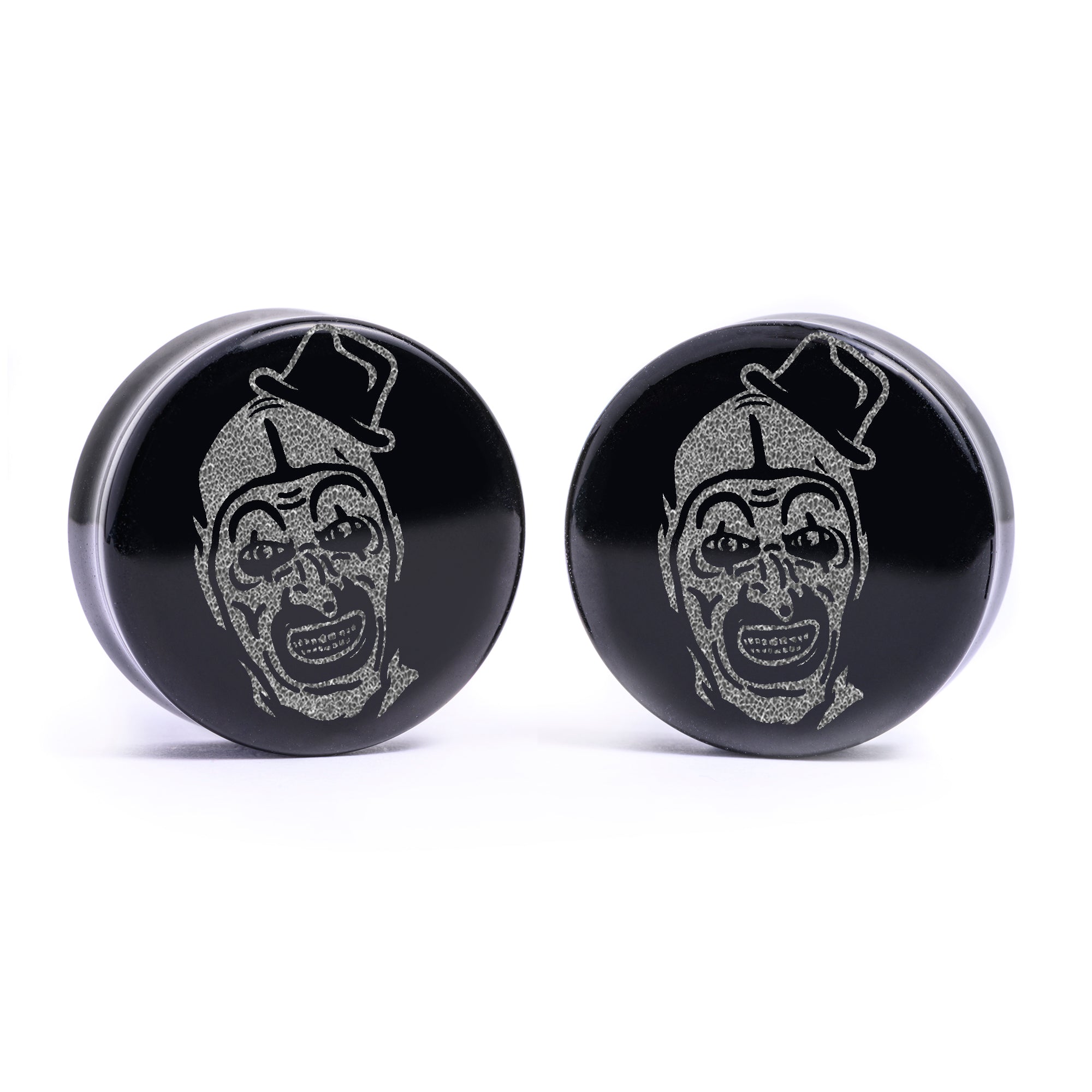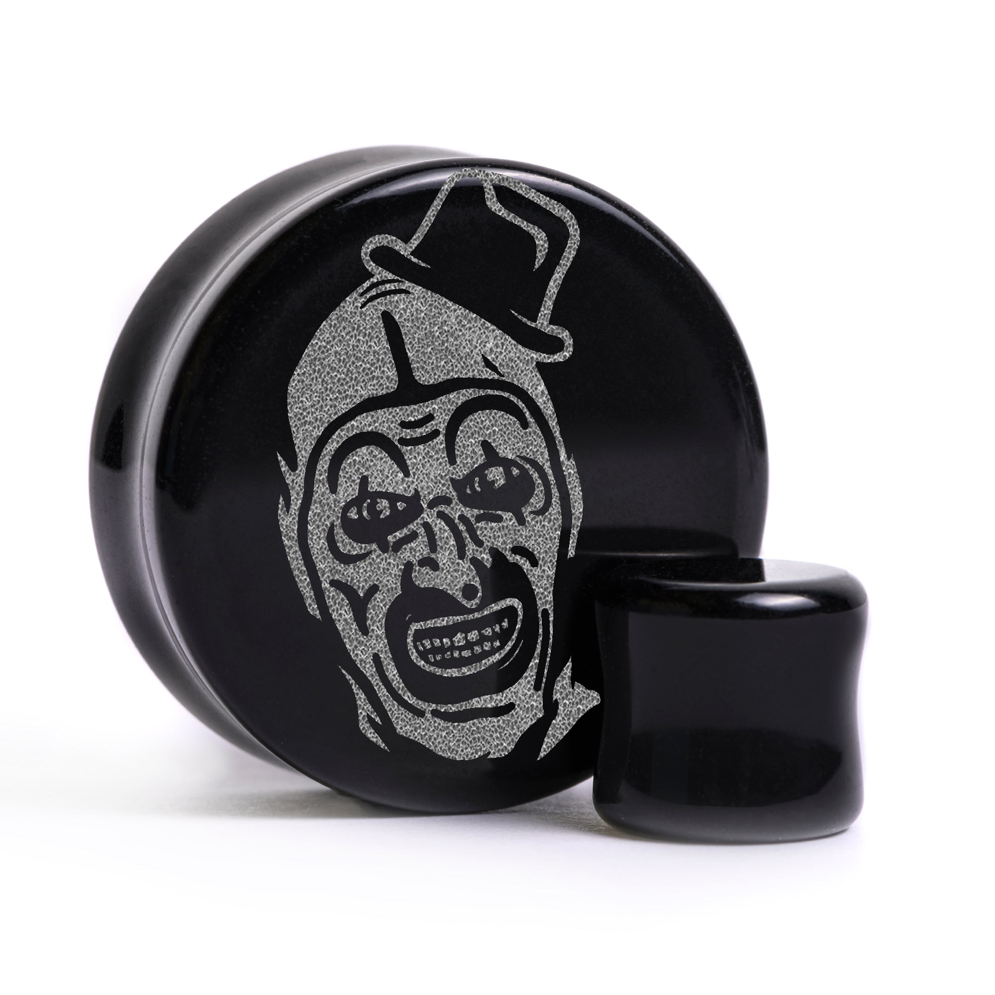 Oktober Halloween Exklusivitäten perfekt für jeden Horrorfilmfan. Horror-Ikone 'Terrifier' Doppelt geblähte schwarze Glas Plugs.