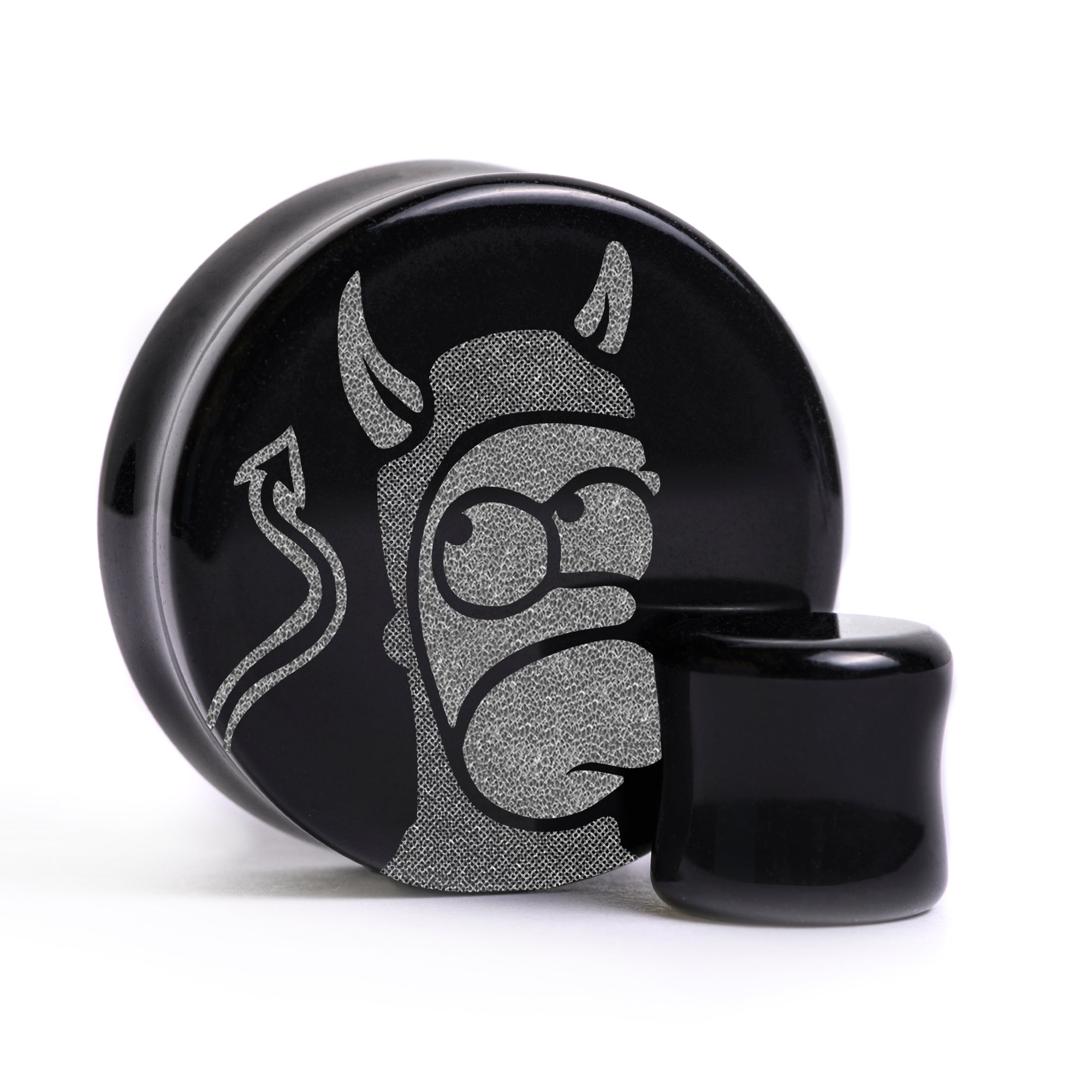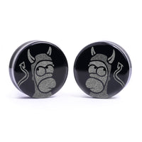 Begrenzte Auflage Flachgesicht Doppelt gebogene schwarze Glas-Plugs mit unserer Lasergravur “Teufel Homer" design. Dieses Produkt ist Teil unserer Halloween-Promotion