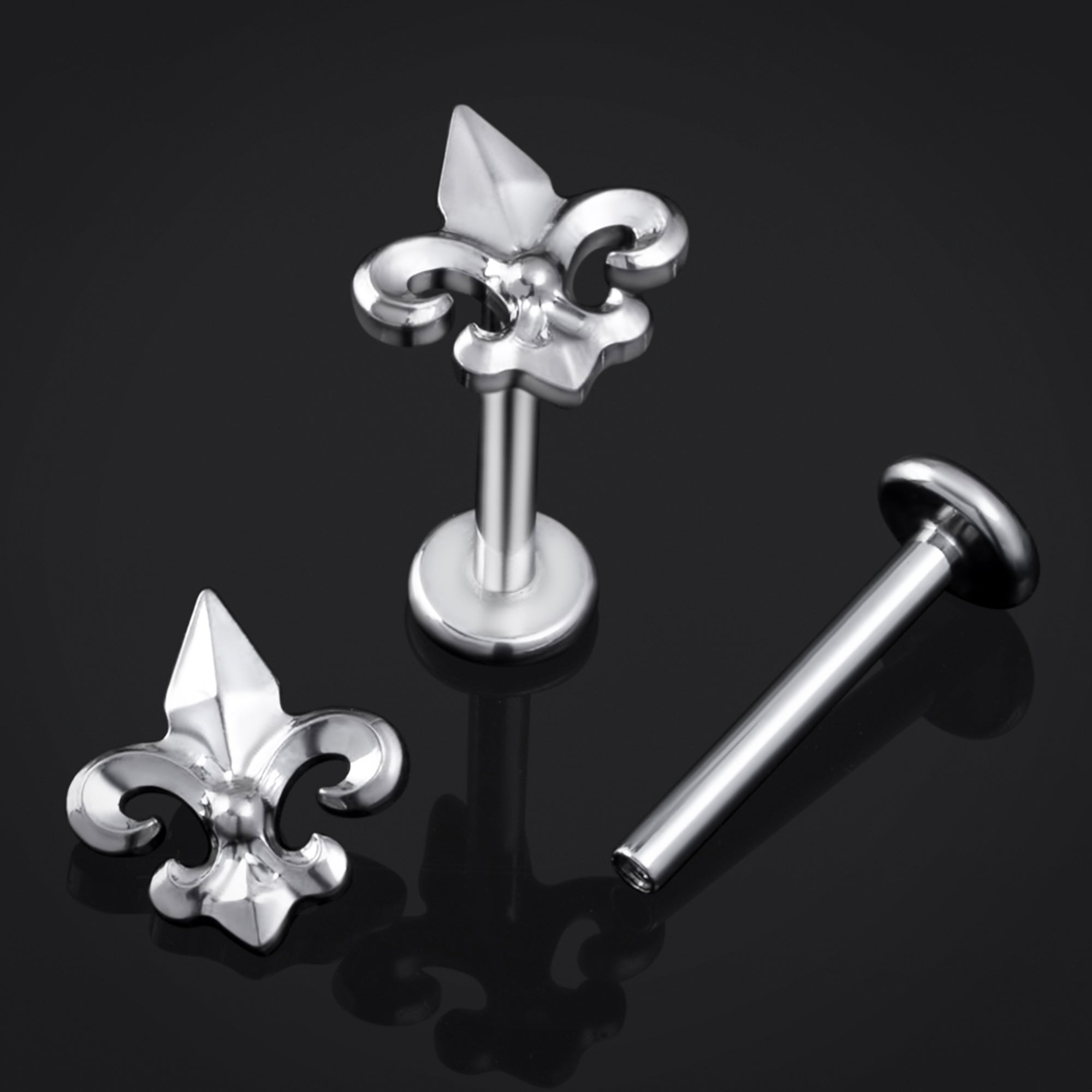Silberner Fleur De Lis Lilly Labret-Stecker aus Titan mit Innengewinde, 1,2 mm Stärke