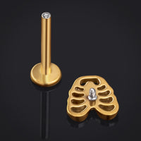Dieser goldfarbene Rippenkäfig-Labret-Stab ist aus hochwertigem Titan gefertigt, das für seine Stärke und Biokompatibilität bekannt ist. Mit einer Stärke von 1,2 mm und einem innenliegenden Gewinde sorgt er für einen sicheren und bequemen Sitz bei minimaler Reizung. Sein minimalistischer Stil macht ihn zur idealen Wahl für alle, die zuverlässigen, täglichen Schmuck aus professionellen Materialien suchen.
