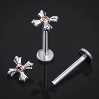 Silberner roter Kreuz-Anhänger mit Juwelen, intern gewindeter Titan-Labret-Stift, 1,2 mm Stärke