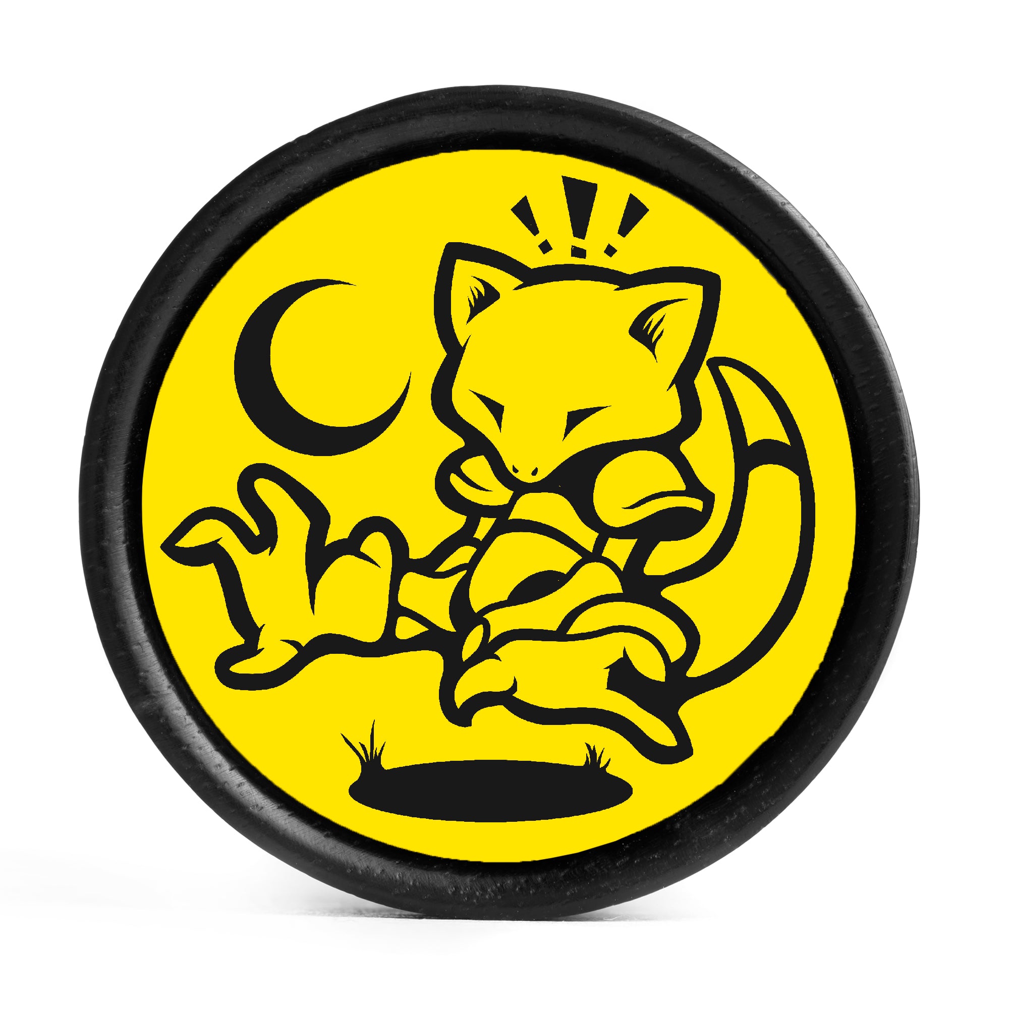 Limited Edition Double flared Ebony Yellow & Black Inlay Wood Plugs featuring the laser engraved Pokemon "Abra"