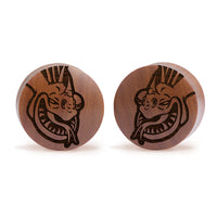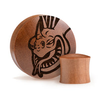Convex Double flared Saba Wood Plugs featuring our laser engraved "Barf & Belch" How to train your Dragon design.