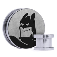 Limited Edition, High Quality Silver Steel Double flare Screw Back Brushed Silver & Black Inlay Plugs featuring the laser engraved "Batman 92"
