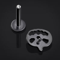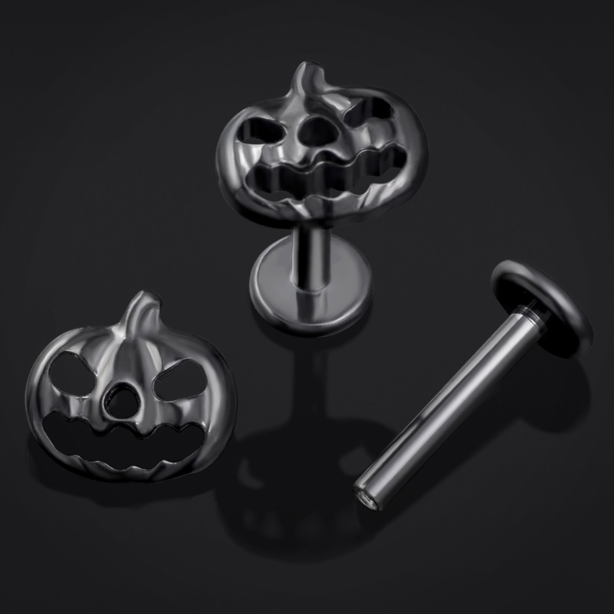 Embrace the eerie spirit of Halloween with this Black Pumpkin Internally Threaded Titanium Labret Stud. Its sleek Black finish and delicate pumpkin design bring a subtle yet spooky charm to your jewellery collection. Crafted with a 1.2mm gauge and an internally threaded design ensuring a secure, comfortable fit, this labret stud is the perfect haunting accessory to cast a shadow of style and mischief wherever you go.