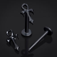 Black, Spiked Ankh, Internally Threaded, Labret Stud, ASTM F136 Titanium, 1.2mm