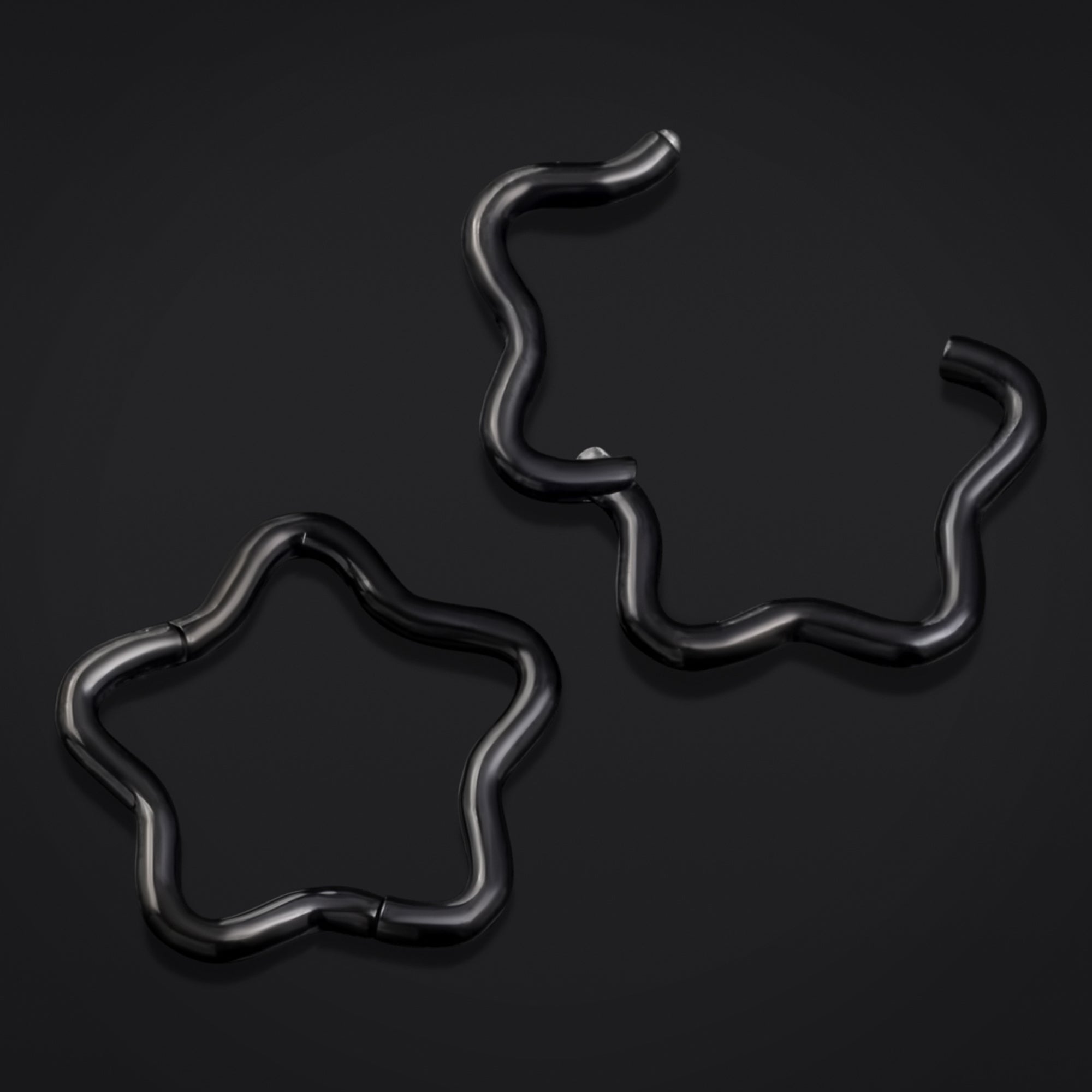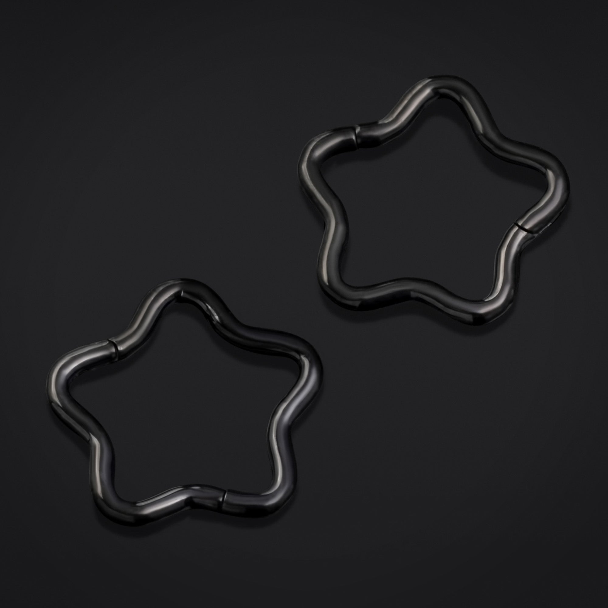Black Star Hinged Nose Ring ASTM F136 Titanium 1.2mm Gauge