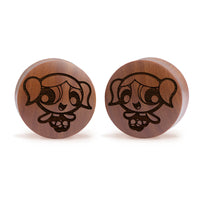 Convex Doubleflared Saba Wood Plugs featuring our laser engraved “Bubbles" design.