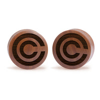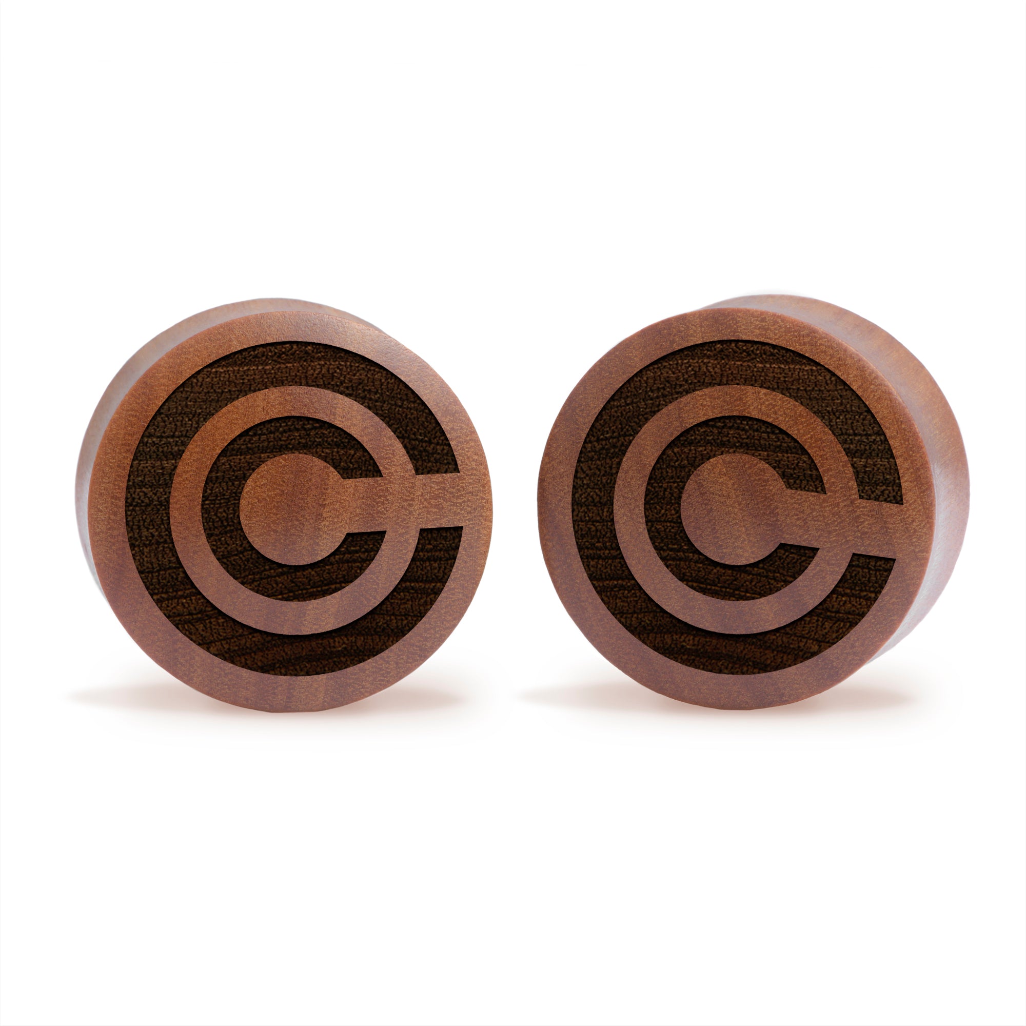 Convex Doubleflared Saba Wood Plugs featuring our laser engraved “CAPSULE CORP - DRAGON BALL Z" design.