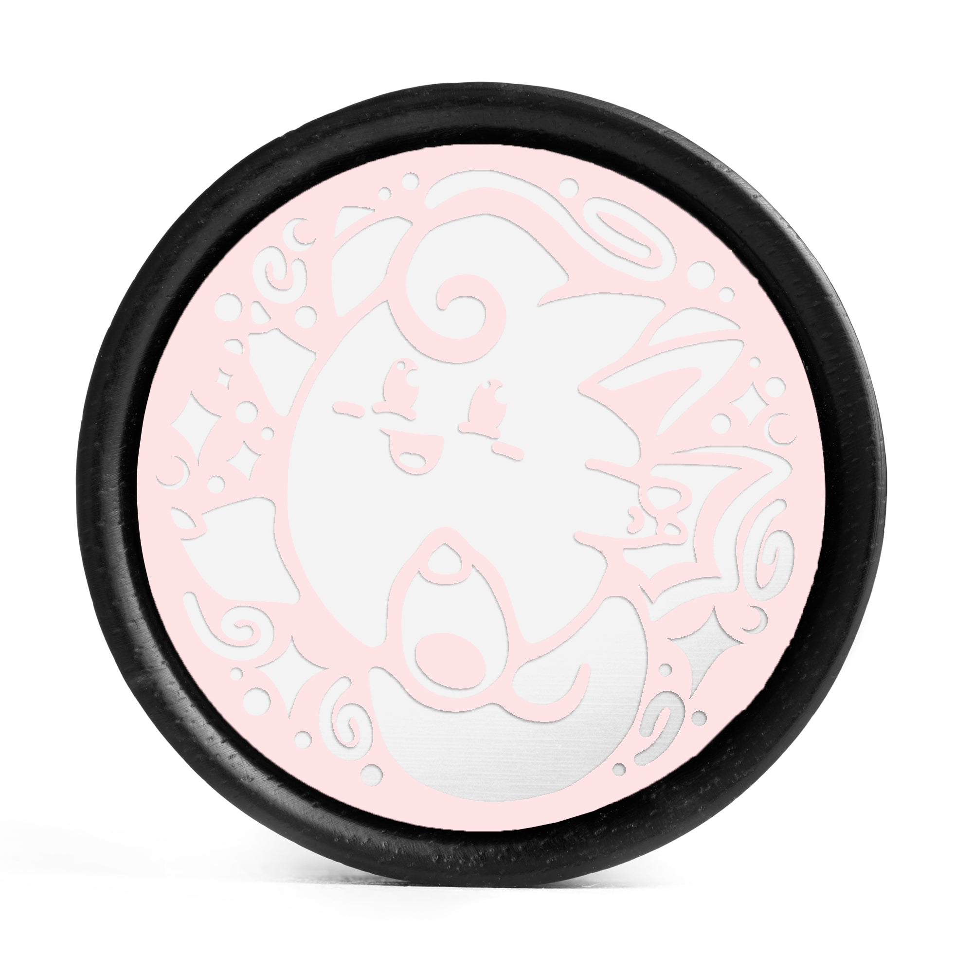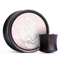Limited Edition Double flared Ebony Light Pink & White Inlay Wood Plugs featuring the laser engraved Pokemon "Clefairy"