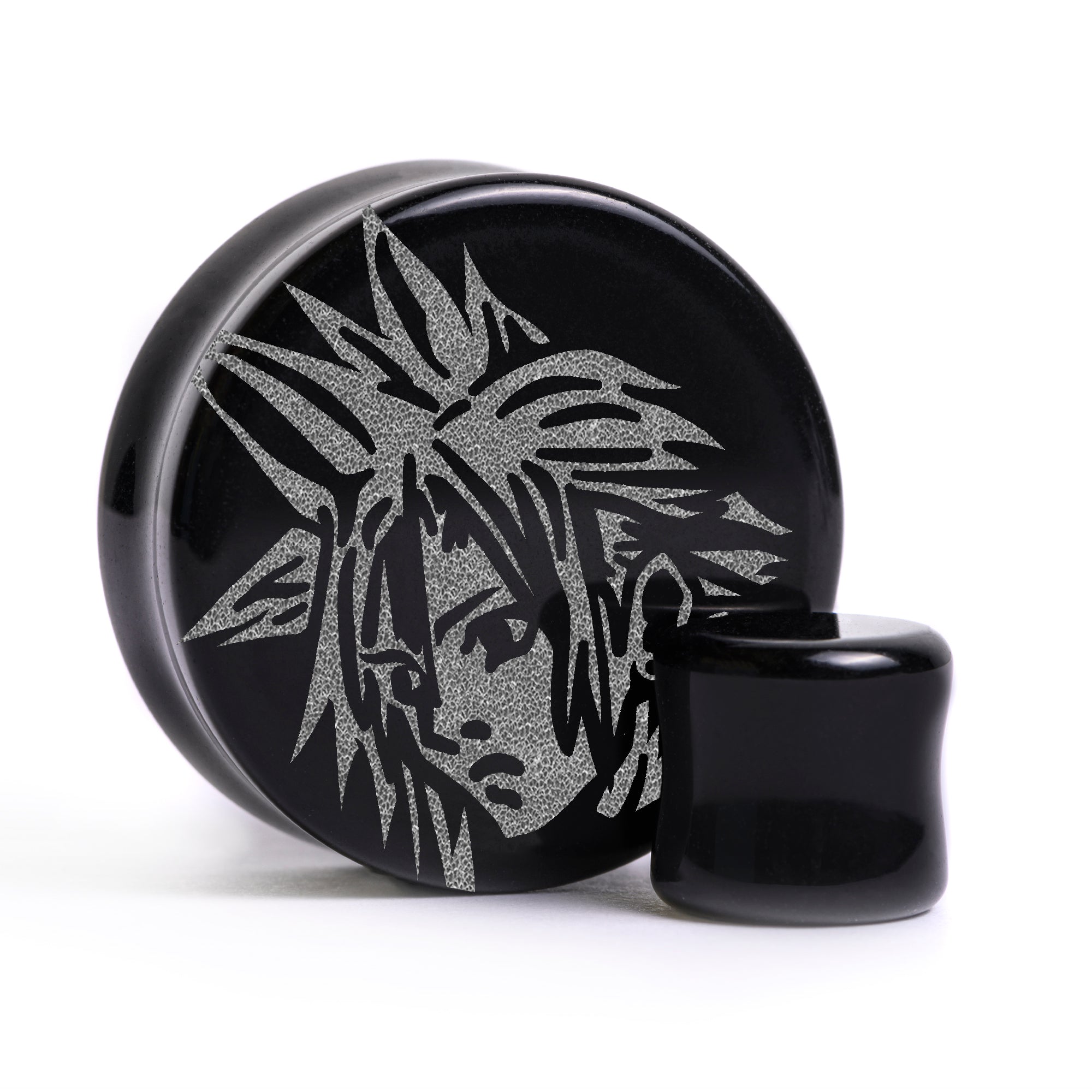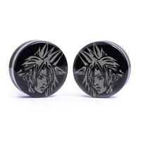 Cloud Strife Plug / Gauge - Black Glass | Flat Faced Double Flare