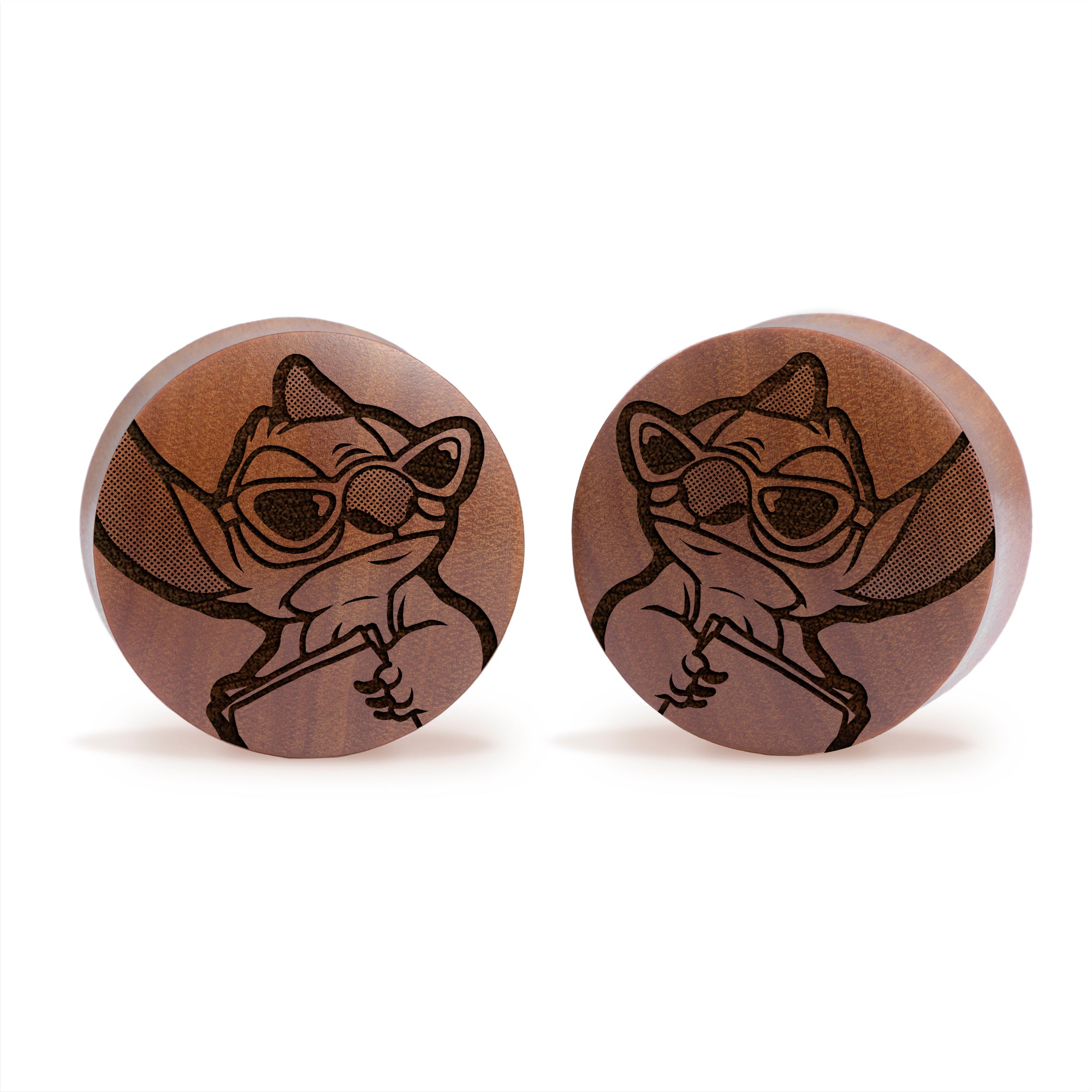 Convex Double flared Saba Wood Plugs featuring our laser engraved "Cool Stitch" design.