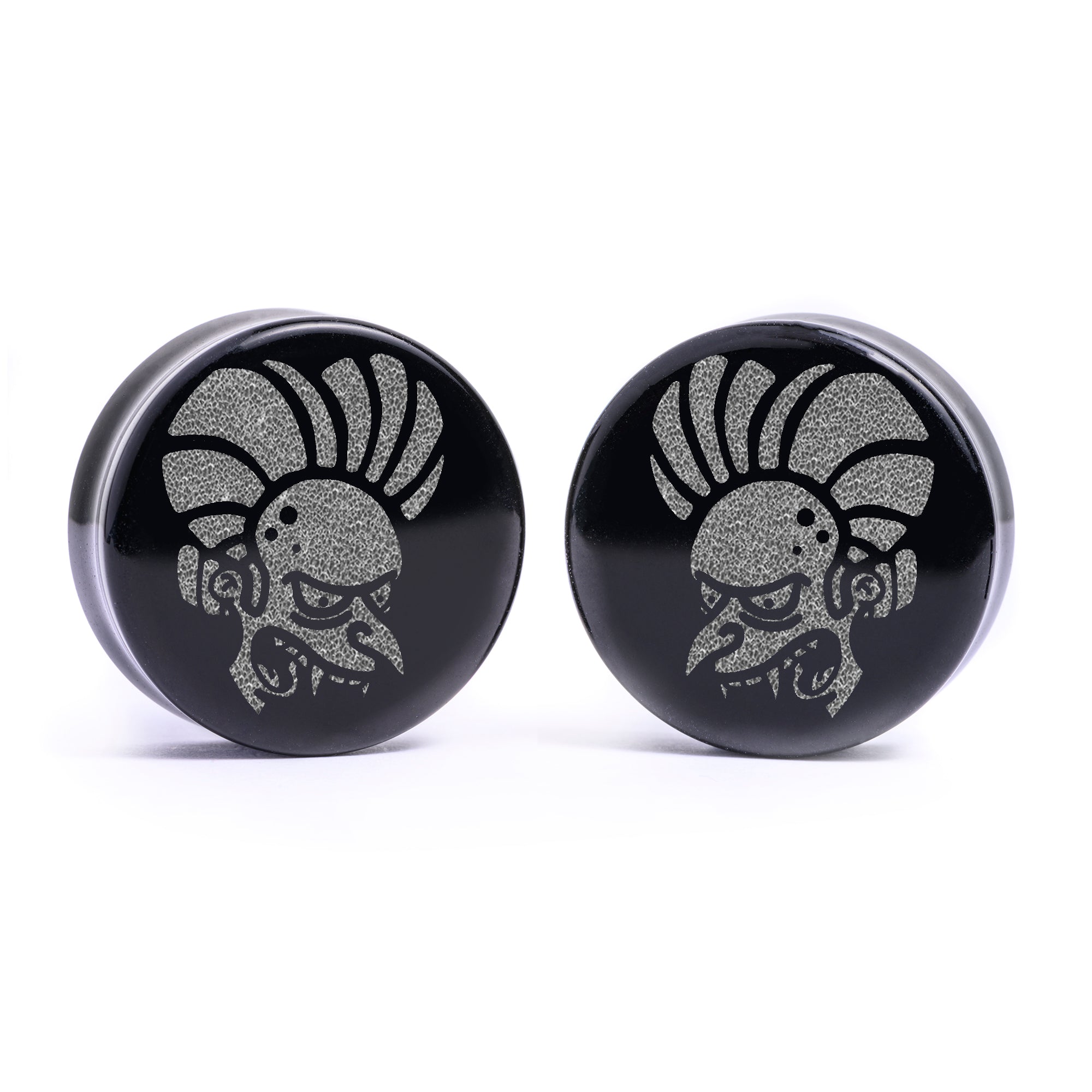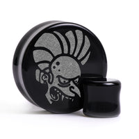 Limited Edition Flat Faced Double flared Black Glass Plugs featuring our laser engraved “Count Burns" design. This product is part of our Halloween Promotion