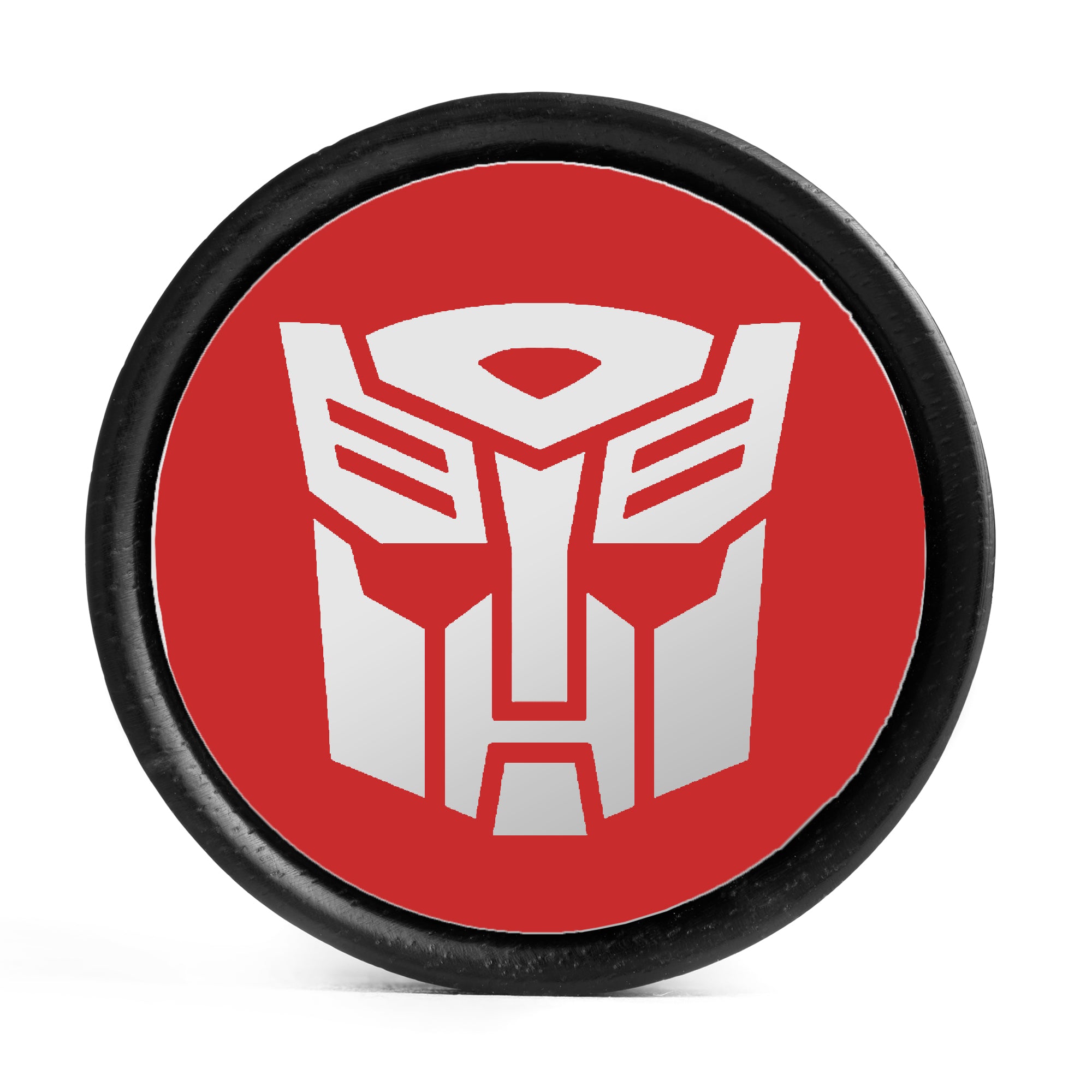 Double flared Ebony White & Red Inlay Wood Plugs featuring the laser engraved “Autobots' design.