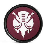 Double flared Ebony Burgundy & White Inlay Wood Plugs featuring the laser engraved “Predacon' design.
