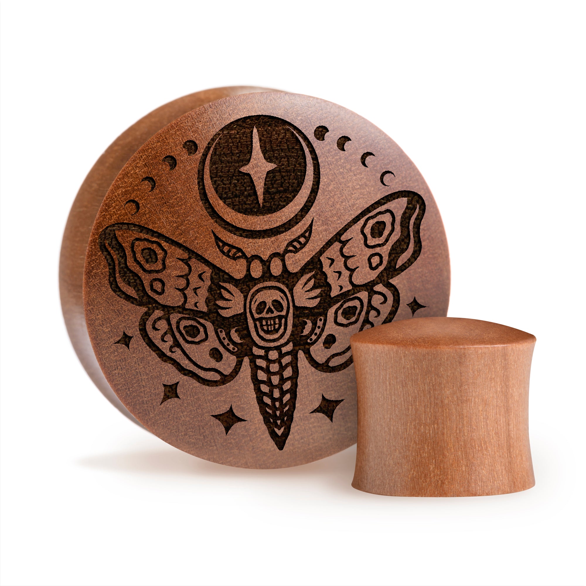 Limited Edition Convex Doubleflared Saba Wood Plugs featuring our laser engraved “Death Moth" design. This product is part of our Halloween Promotion