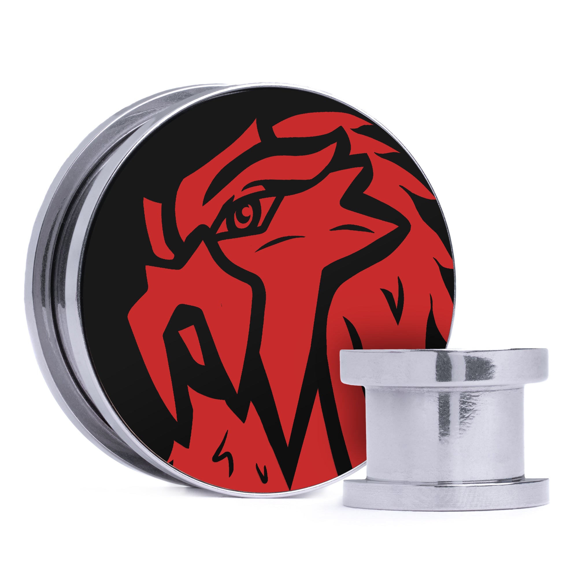 Limited Edition, High Quality Silver Steel Double flare Screw Back Black & Red Inlay Plugs featuring the laser engraved Pokemon "Entei"