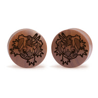 Convex Double flared Saba Wood Plugs featuring our laser engraved "Experiment 626" design.