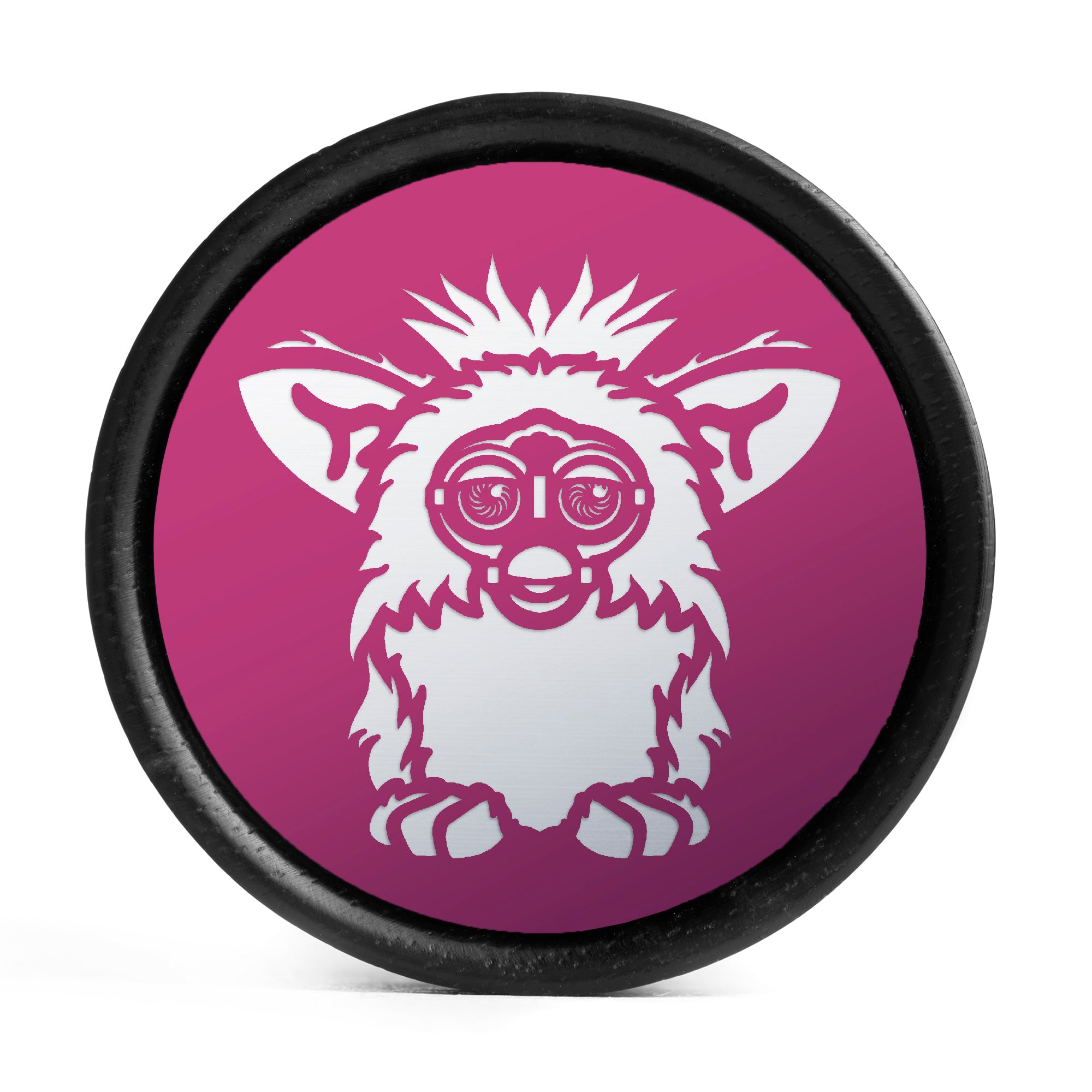 Limited Edition Double flared Ebony Pink & White Inlay Wood Plugs featuring the laser engraved "Furby"