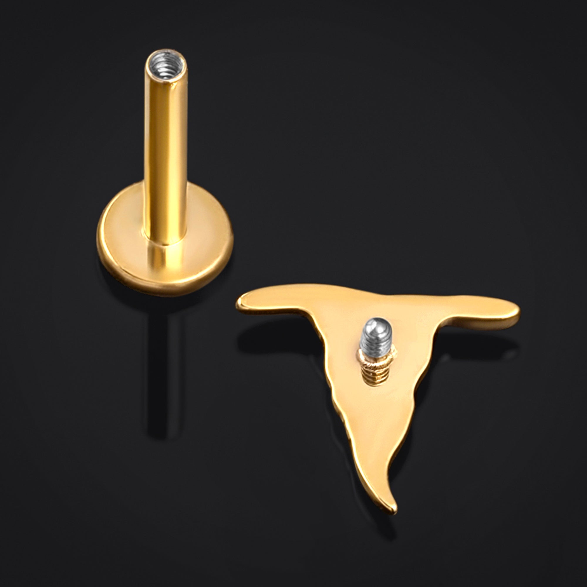 Gold Witches Hat Internally Threaded Titanium Labret Stud 1.2mm Gauge
