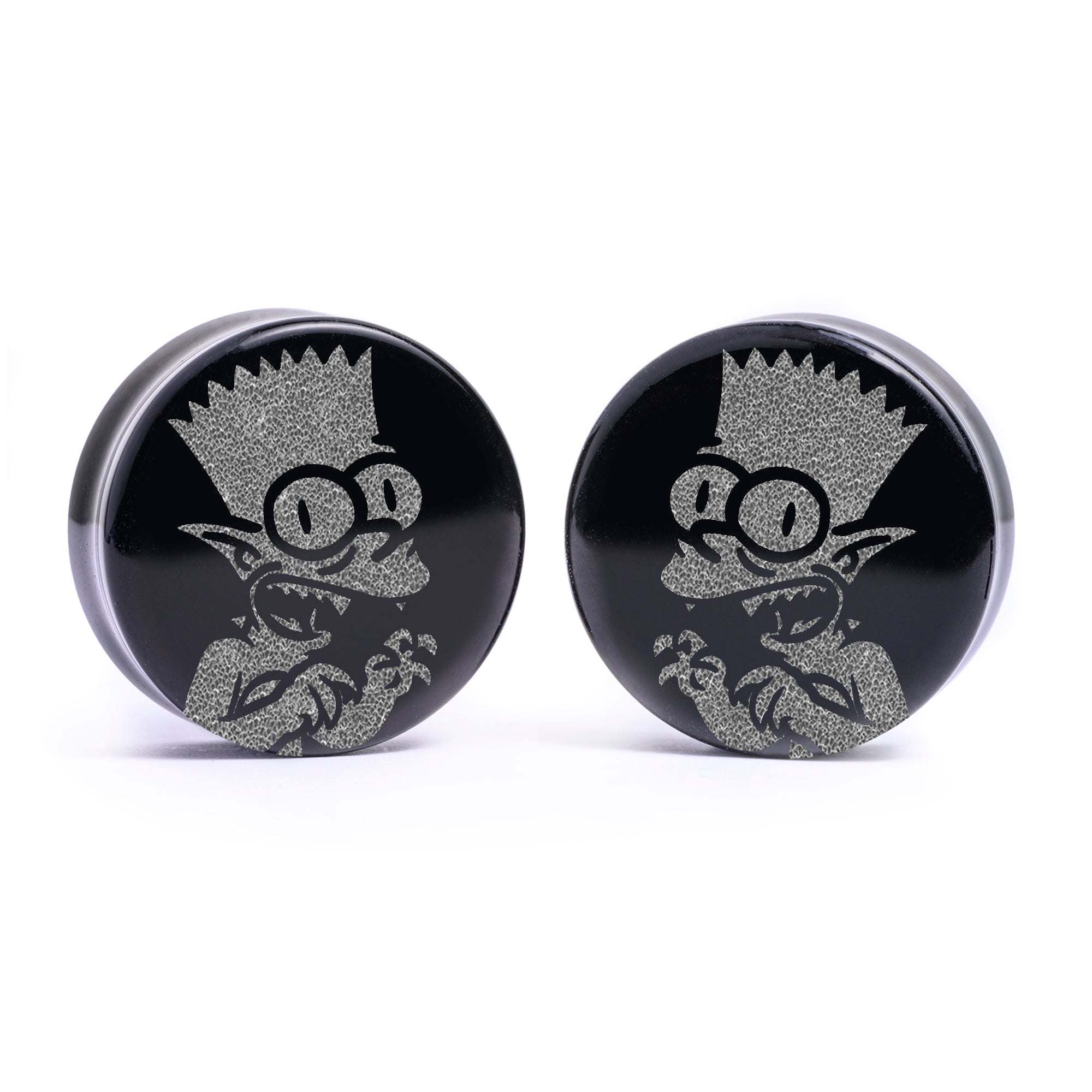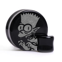 Limited Edition Flat Faced Double flared Black Glass Plugs featuring our laser engraved “Gremlin Bart" design. This product is part of our Halloween Promotion