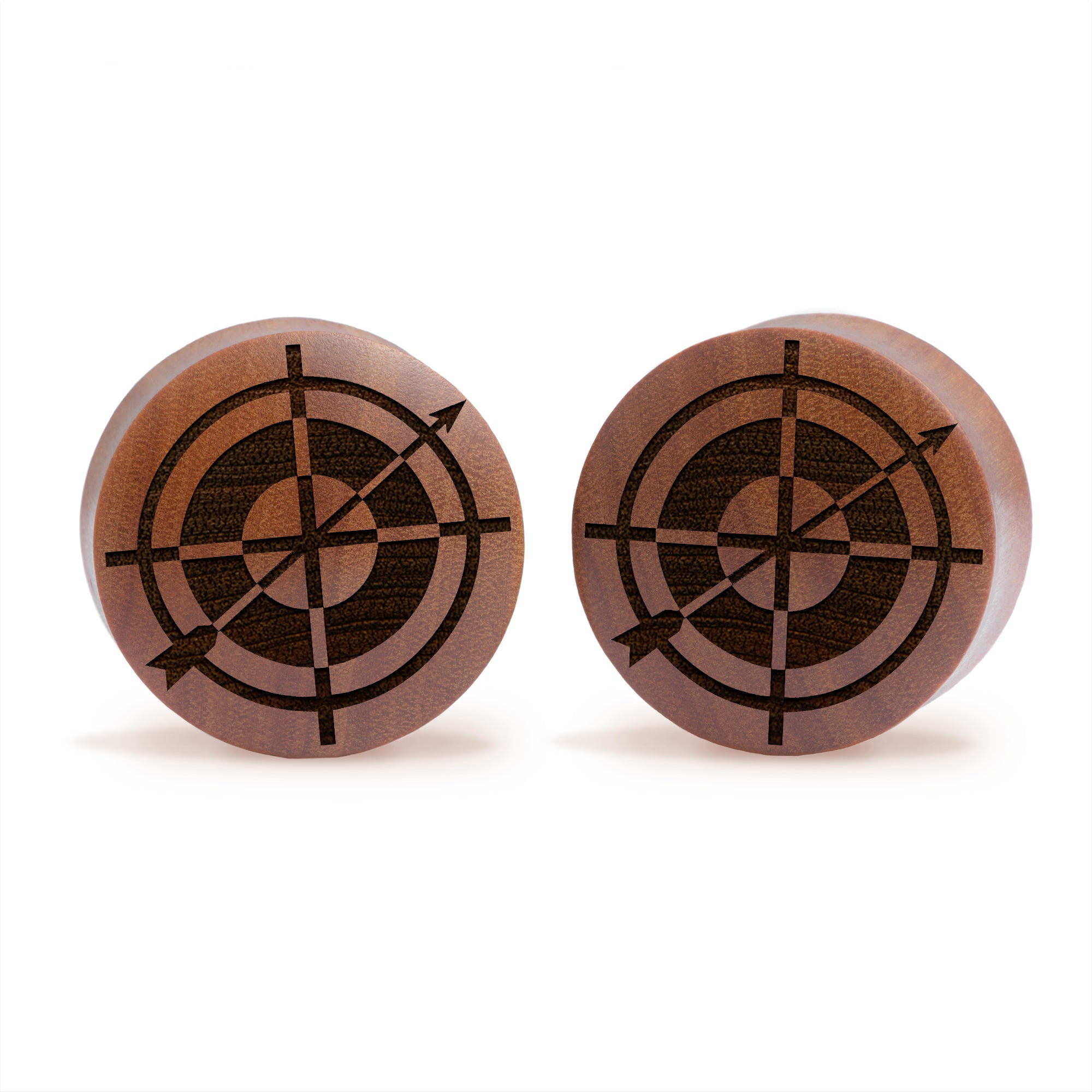 Convex Doubleflared Saba Wood Plugs featuring our laser engraved “Hawkeye" design.
