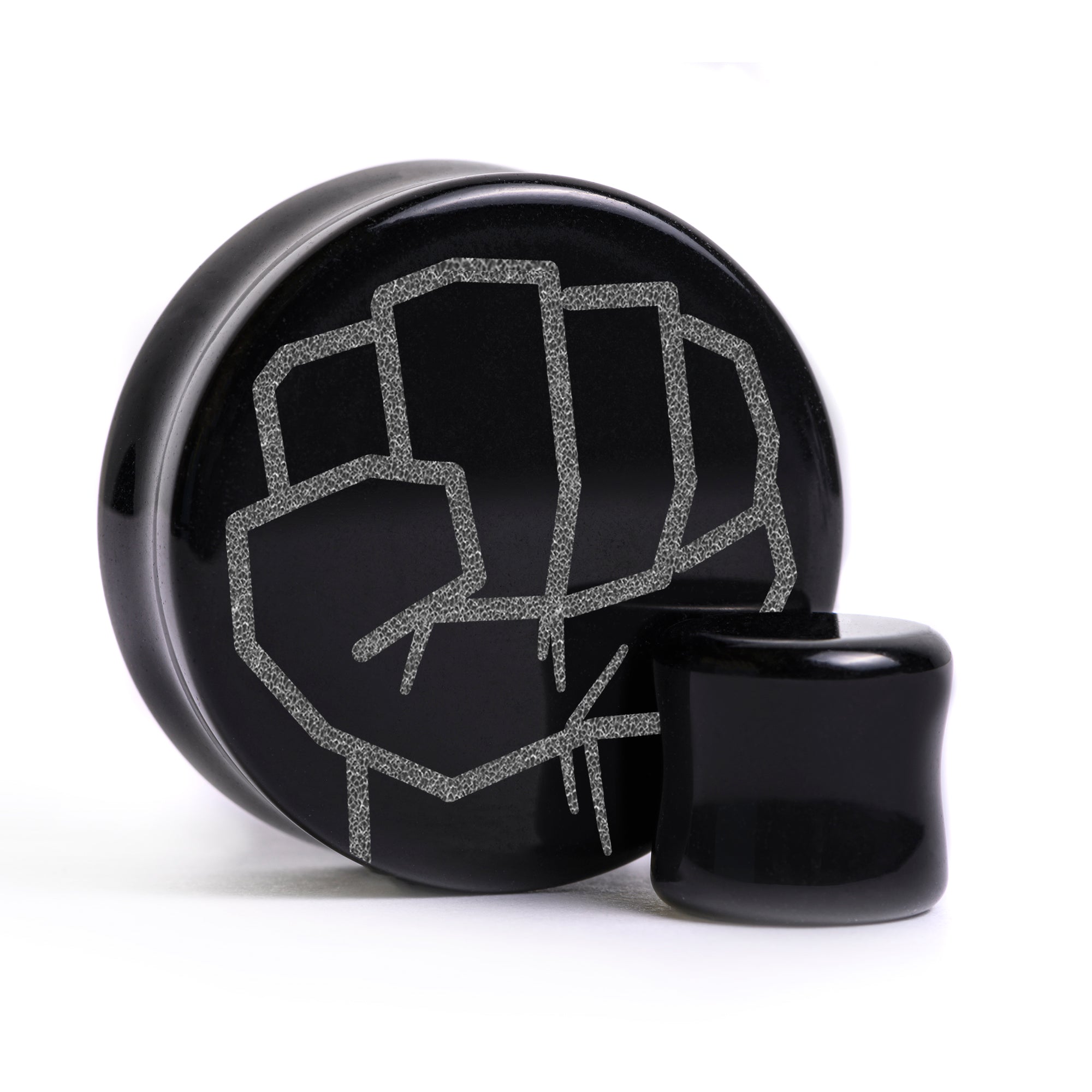 Flat Faced Doubleflared Black Glass Plugs featuring our laser engraved “Hulk" design.
