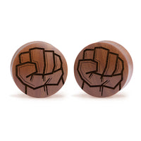 Convex Doubleflared Saba Wood Plugs featuring our laser engraved “Hulk" design.